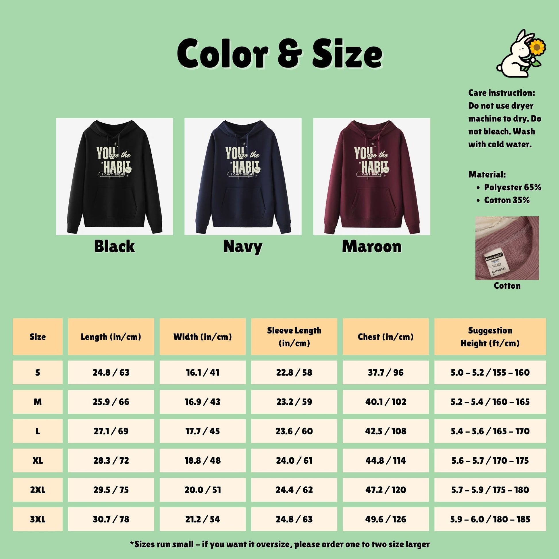 • Die Farben von Sweatshirts und Hoodies können aufgrund der Raum-/Außenbeleuchtung etwas anders aussehen als auf dem Bild.
